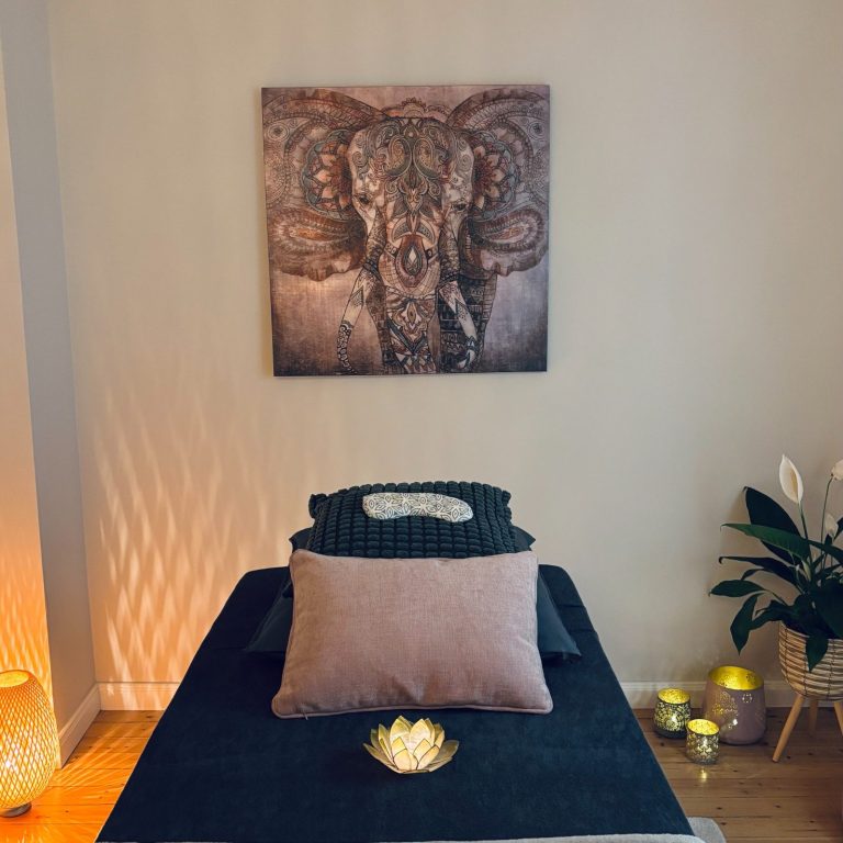 Eine Reiki-Anwendung beginnt mit einem kurzen Gespräch, um deine aktuellen Themen und Anliegen zu besprechen. Anschließend legst du dich bequem auf die vorbereitete Liege, während ich meine Hände sanft über deinem Körper halte und führe.